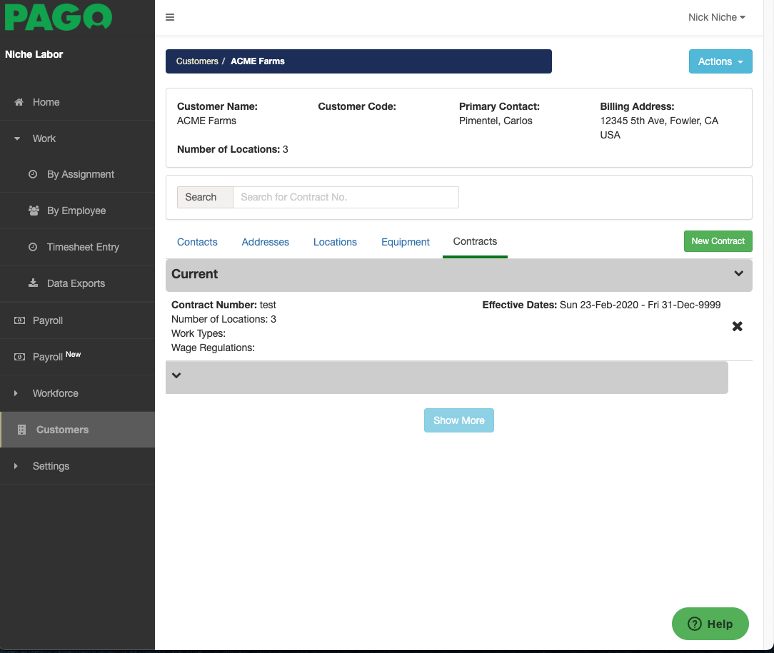 Once you have associated the crew with the contract it will appear in our list.