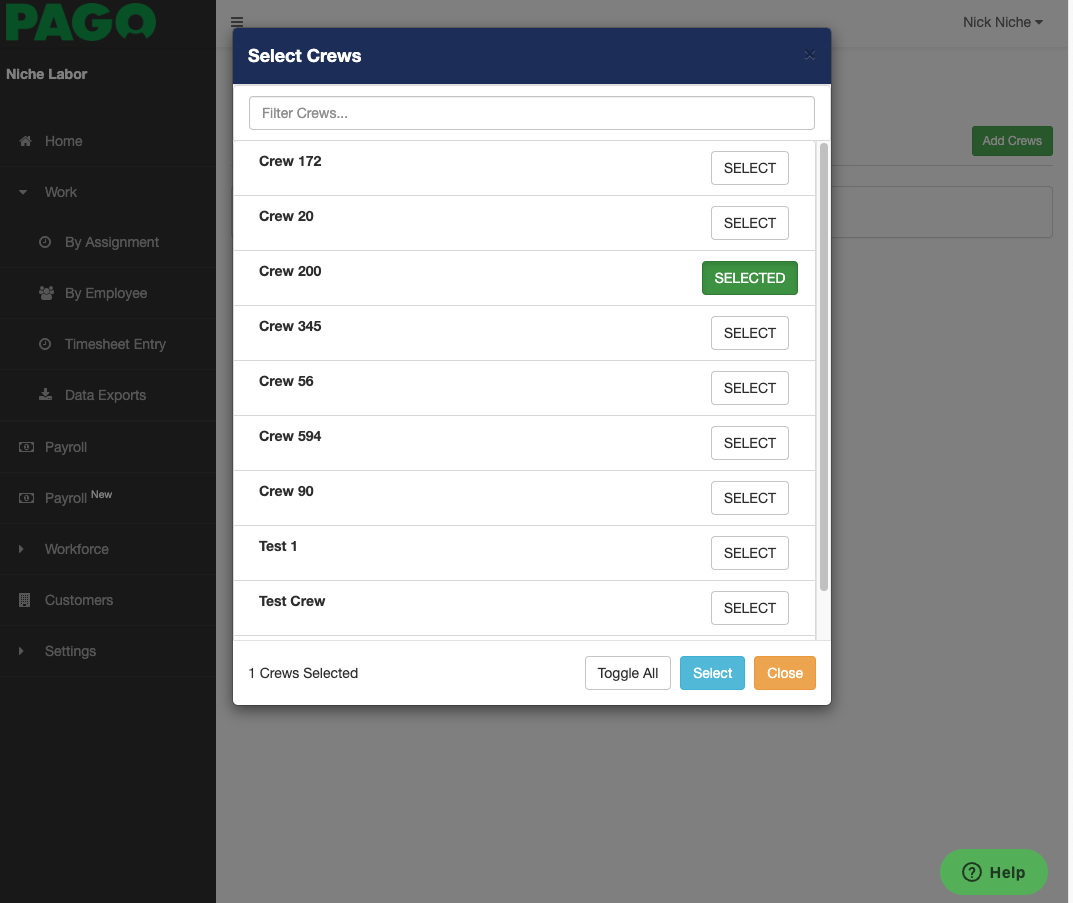 Select the Crews tab for a list of crews to populate.