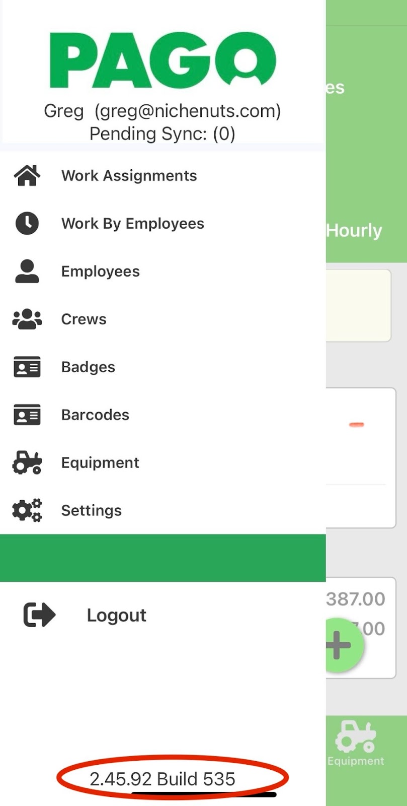 When you get a moment, open up the Pago Timekeeper mobile app and go to the home page to see what build you are currently using.