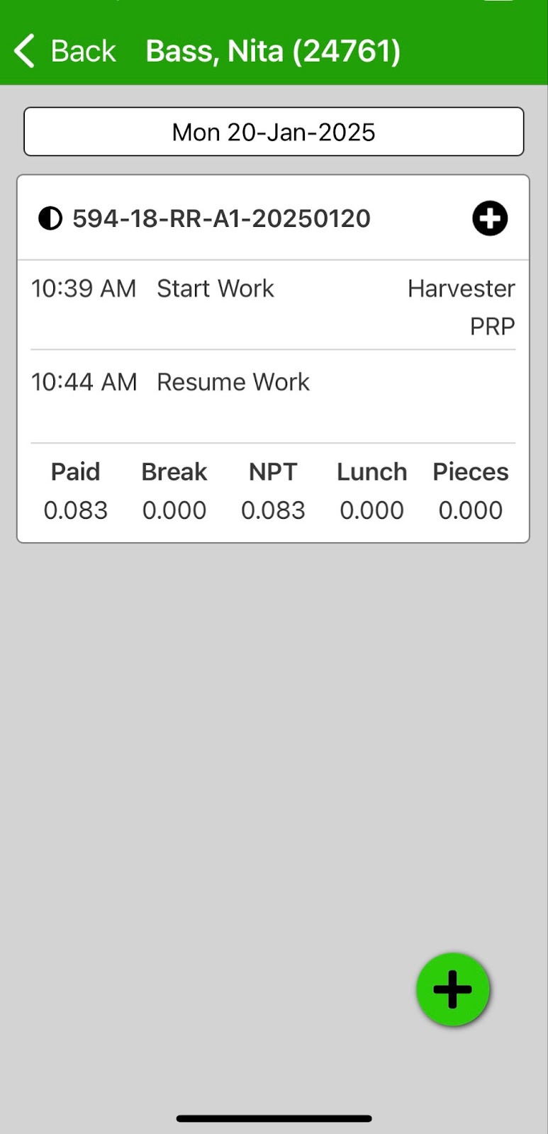 To continue to add entries for this employee, you will hit the green plus button and select the desired entry.