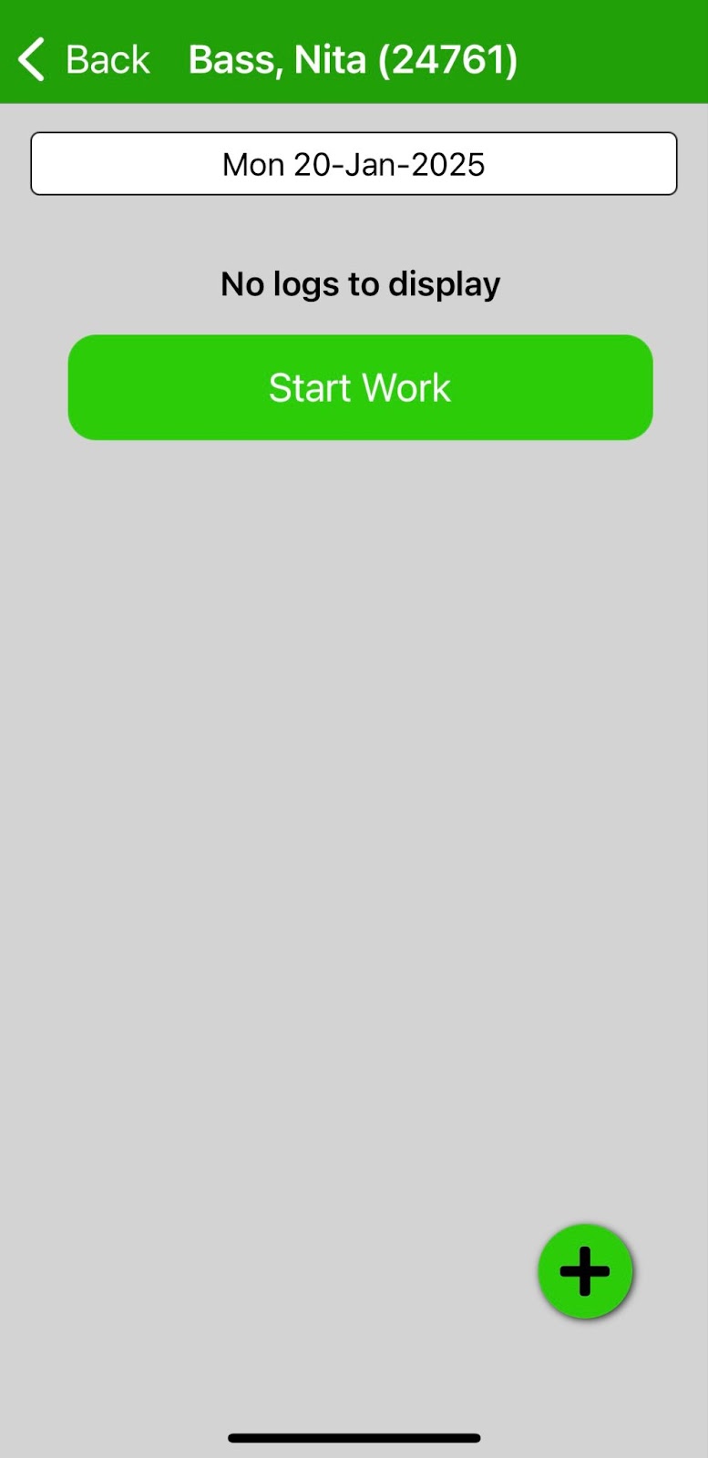 Once the work assignment is created, the app will take you to the following screen where you can tap the Start Work button to clock-in the employee. As seen below.